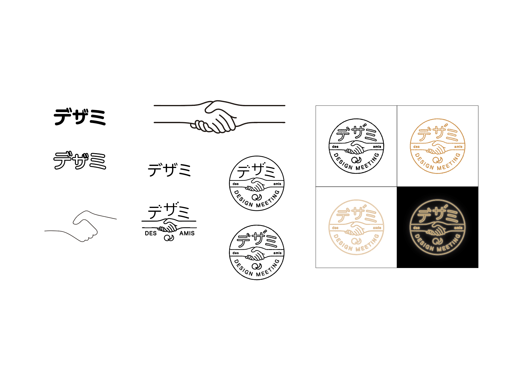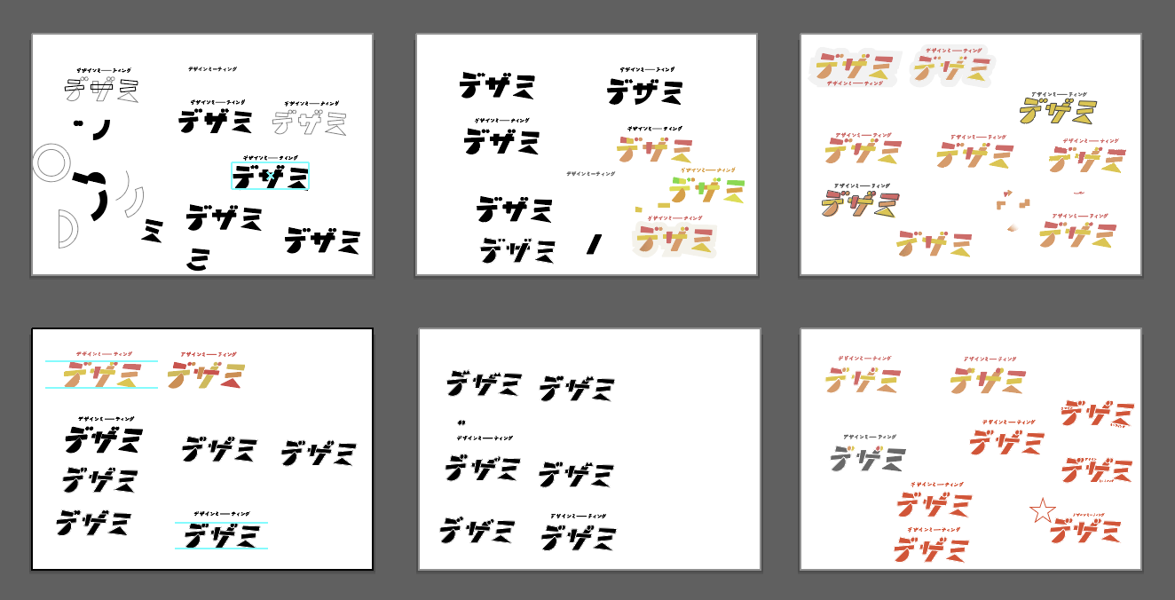 線を太くしたバージョンや、手を簡略化したバージョンなど、細かに調整されてます。「デ」「ザ」「ミ」の大きさも1つずつ調整しているのが伺える…!