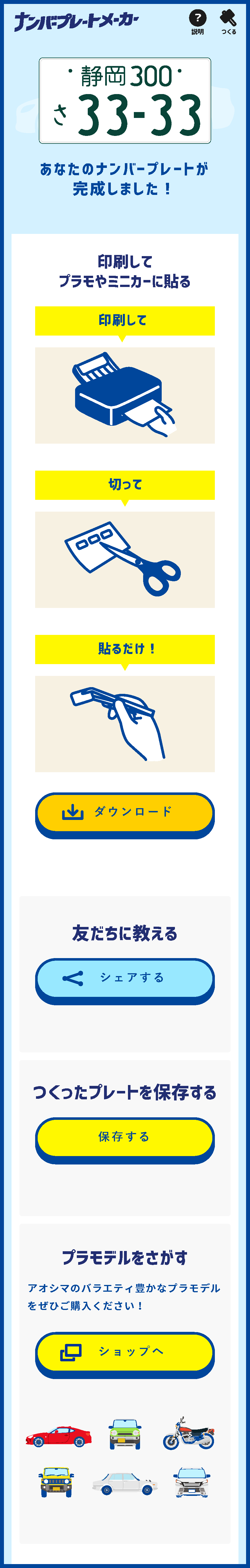 ただこちらは「自社プラモデルのスケールに合わせたナンバープレートが作れるサービス」となっているのでECと合わせて利用いただくことで相乗効果が期待できることから今回のシミュレーターECに含めてご紹介いたしました。
