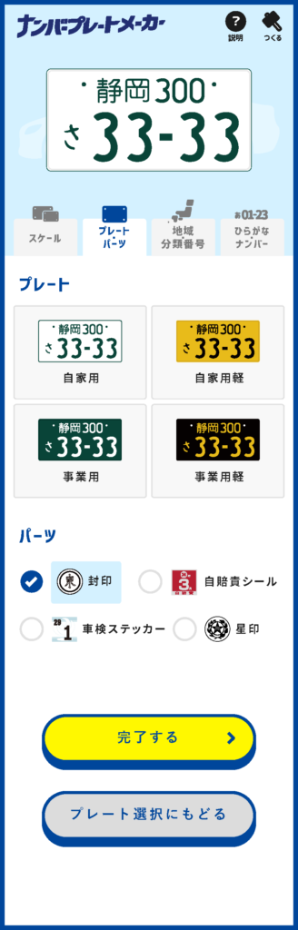 遊び心溢れる見た目ですが、かなり本格的に忠実なナンバープレートが作れます。