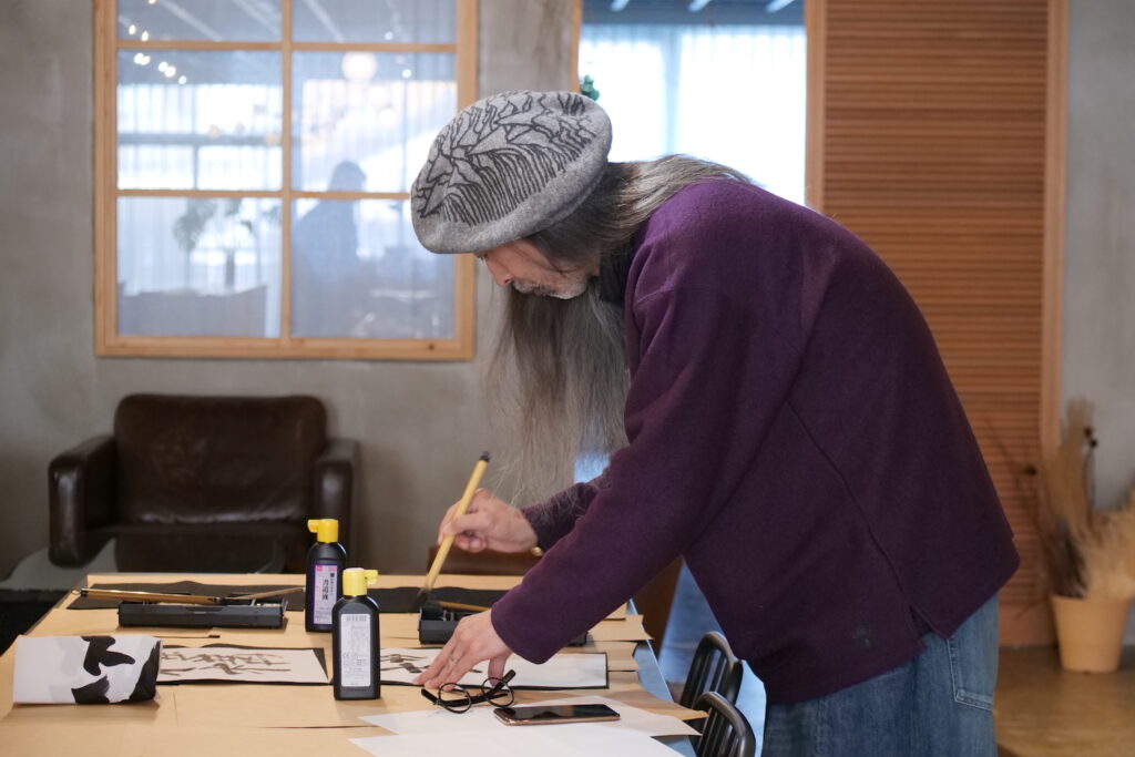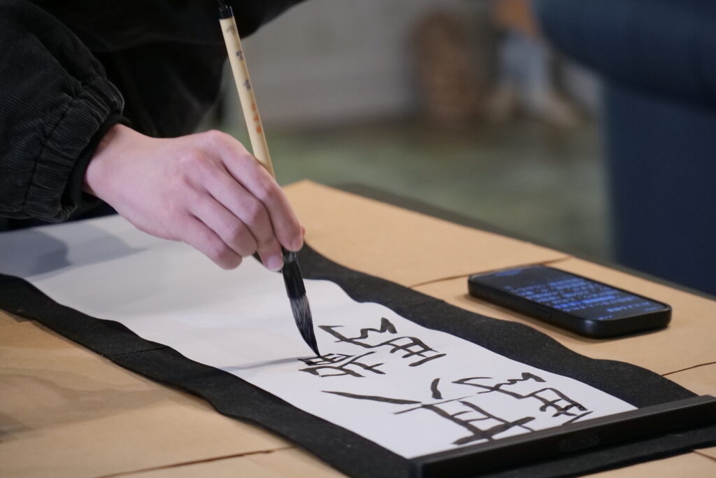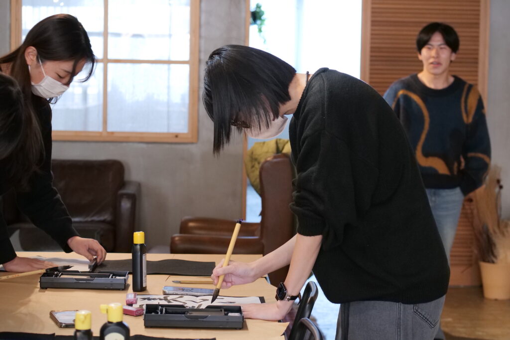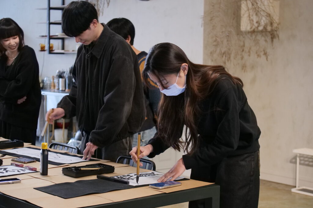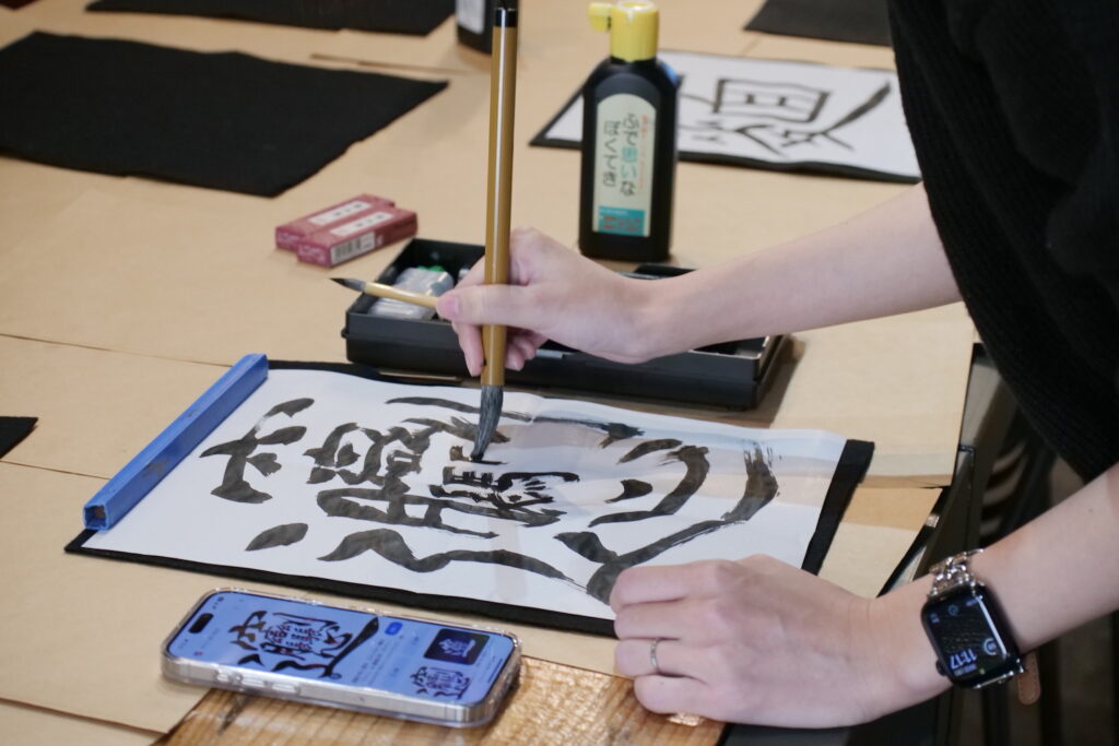 みんなが書き終わると、1Fで待機してくださっていた代表と常務のおふたりが書きはじめていきます。迷うことなく筆を進めていくSayakaさん。