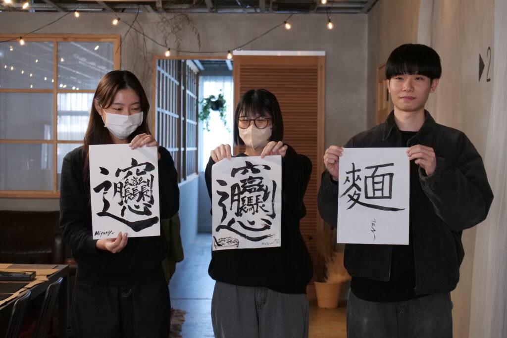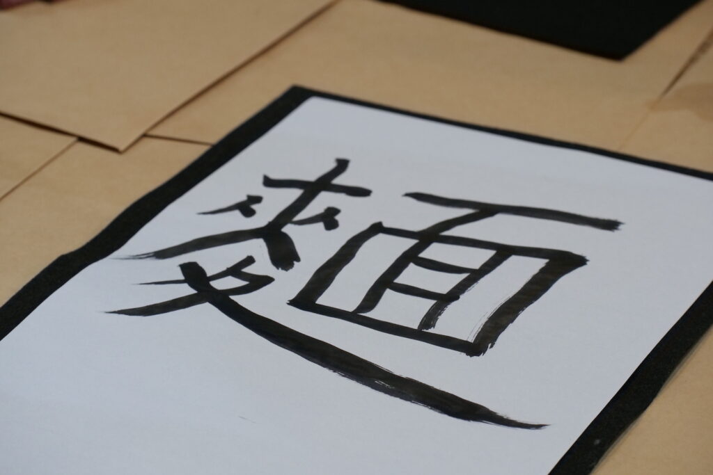 見事に「𰻞𰻞麺」という書き初めが完成しました!ちなみに「麺」という漢字は、台湾バージョンの「麵」です。