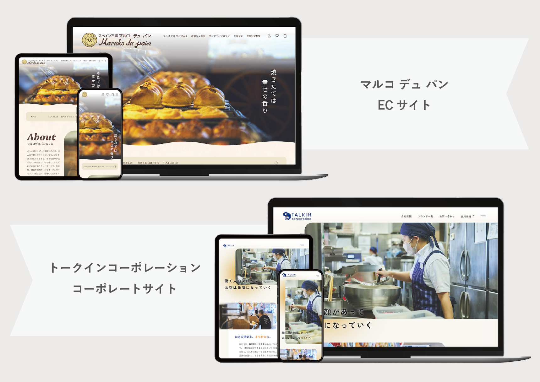 あんどぷらすでは、2024年に自社ブランドであるマルコ デュ パンのECサイト、2025年にトークインコーポレーションさまのコーポレートサイトを制作いたしました。