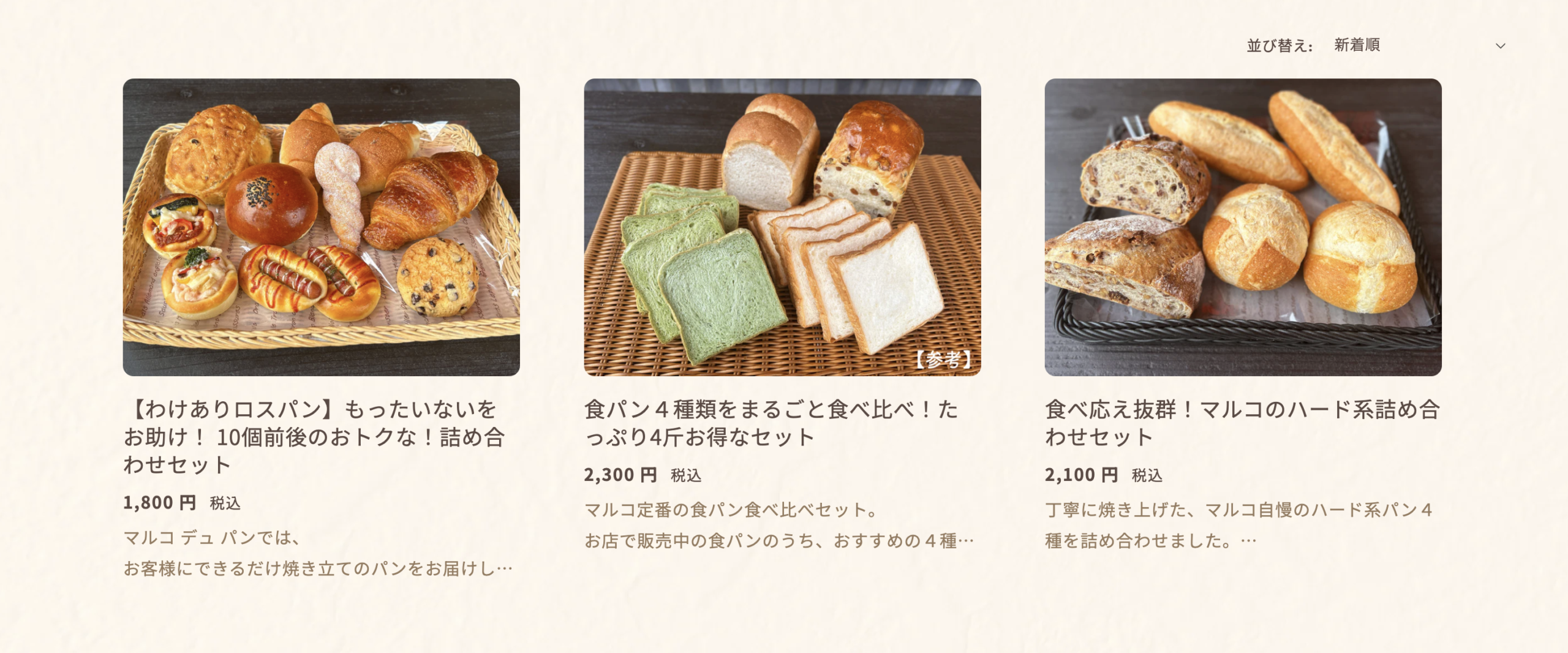 ご担当者さま:マルコ デュ パンのサイトには、定番商品から新作まで、様々なパンを一覧で見ることができるページがあるのですが、そのページがまるで実店舗のパン屋さんみたいなんです。